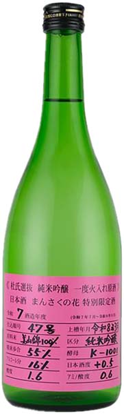 まんさくの花 杜氏選抜ピンクラベル 純米吟醸原酒【一火 】R7BY 日の丸醸造 価格 3,300円 1,705円 容量 1800ml 720ml 原料米 秋田県産 美山錦 精米歩合 55% 日本酒度 +0.5 酸度 1.6 ALC度数 16度 商品の特徴 【特約店限定流通・季節商品】 『まんさくの花 杜氏選抜』シリーズは、杜氏(製造責任者)が選んだお薦めの搾りたて原酒を、自ら監修のもとに瓶詰めを行い、手書きのラベルで発売する当社の人気商品です。(なお、このシリーズを発売開始した当時は杜氏制度を取っていましたが、現在は杜氏制度は取っていません。製造責任者という広義の意味で杜氏という言葉を使用継続しています。) 穏やかですが、バナナのような爽やかな吟醸香があり、全体的にシャープな酒質で酸味の主張がやや強めです。味の奥には程よい苦渋感があり、これが良いアクセントになっています。食中酒としてもおすすめです。 ≪冷蔵推奨≫ 蔵元 日の丸醸造(株)【まんさくの花】 消費税込みの価格です。 オンラインショップはこちら 日本酒季節限定酒 秋田県 日の丸醸造(株)【まんさくの花】